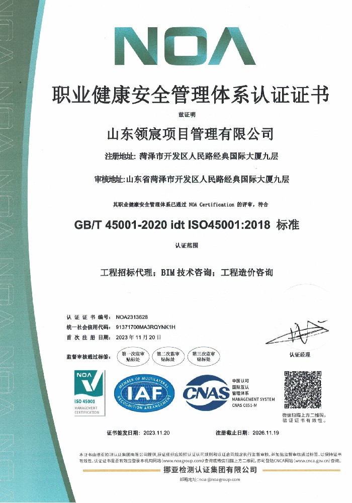 山東領(lǐng)宸項目管理有限公司是一家以全過程工程咨詢?yōu)楹诵牡淖稍兎?wù)公司,本公司現(xiàn)具備工程造價咨詢乙級資質(zhì),房屋建筑工程、市政工程監(jiān)理乙級資質(zhì)和招標(biāo)代理備案。公司擁有專業(yè)的工作團隊及豐富的行業(yè)經(jīng)驗,在行業(yè)領(lǐng)域內(nèi)具有雄厚的實力,企業(yè)管理人員擁有行業(yè)20年以上的資深行業(yè)工作經(jīng)驗。公司現(xiàn)有專業(yè)技術(shù)人員50余人,具有一級注冊造價工程師、注冊監(jiān)理工程師、一級注冊建造師、二級注冊建造師、招標(biāo)師等工程類國家注冊執(zhí)業(yè)資格證書人員合計30余人以及高級工程師3人,持證上崗率達到90%......